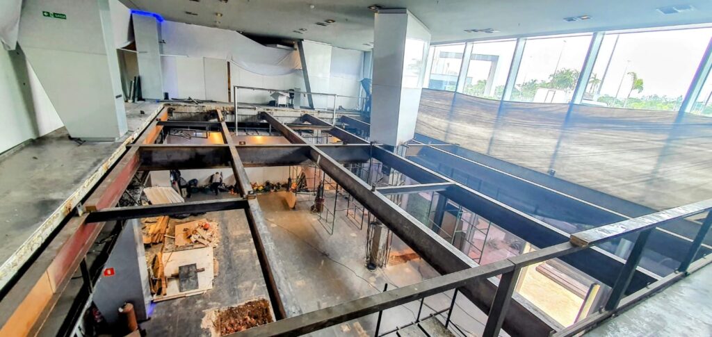 Construção de mezaninos robustos, otimizando espaços industriais com materiais de alta durabilidade.